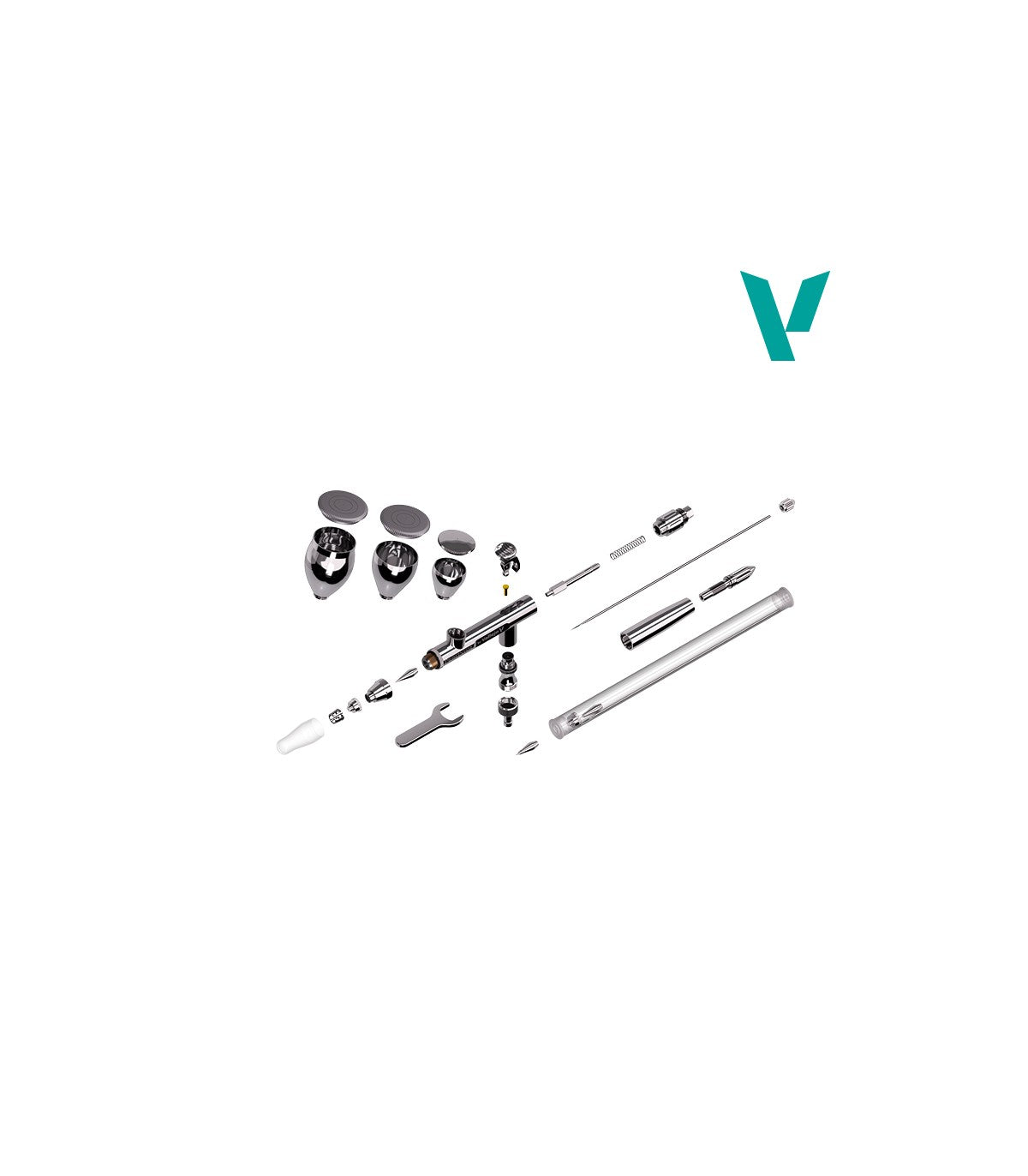 Este modelo incluye dos conjuntos de aguja y boquilla de 0,2 mm y 0,3 mm, lo que proporciona una gran adaptabilidad a distintos estilos y técnicas de pintura. Además, incorpora tres copas de pintura a rosca de 3 ml, 9 ml y 15 ml, ofreciendo máxima flexibilidad según el tipo de trabajo, desde detalle extremo hasta aplicaciones de mayor cobertura.